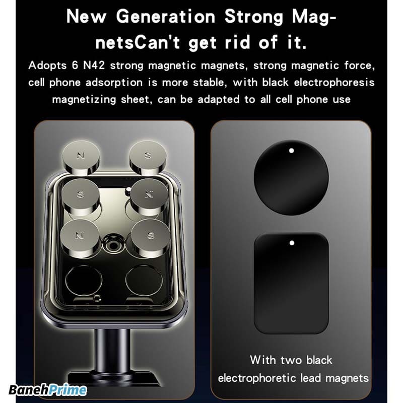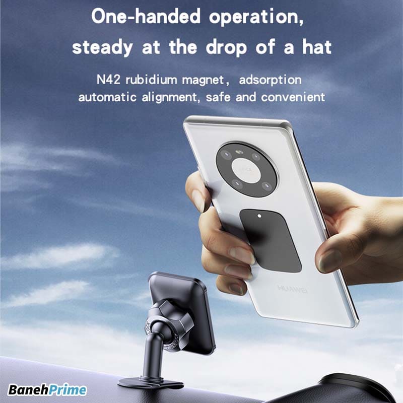 - آهنربای قوی برای نگهداشتن ایمن و محکم گوشی در طول رانندگی، حتی در جادههای ناهموار.